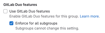 For GitLab.com, the GitLab Duo settings page is only available for top-level groups, not for subgroups.